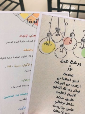 قام مركز أترجة القصر نساء - صباحي في يوم الثلاثاء الموافق 2019/10/22 م بعمل ورشة وسائل تعليمية بعنوان " نور " للمهندسة / ديمة عبدالله العجمي لموظفات المركز وتحدثت عن كيفية استخدام التكنولوجيا في تعليم الدارسات وذلك لاكتساب مهارات تعليمية جديدة وطرق عمل أسئلة في البرامج لتشويق الدارسات في حل الأسئلة وتضمنت الورشة ضيافة وهدايا للمشاركات في المسابقة